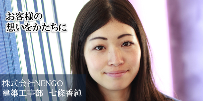 NENGOに入社を決めた理由は大きく2つある。 1つは、NENGOのミッションに深く共感したこと。元々七篠さんは学生時代に建築を学んでいた。そのことから、七篠さんは自然と「住まい」に対して興味を抱くに至る。その中で感じていた疑問、それは「日本には似たような街並みが多い」ということ。就職活動の際には、「どのようにしたら個性ある街並みをつくることができるのか」ということを軸として活動を行っていた。そこで出会ったのがNENGO。「100年後の街つくり」を掲げ、その土地「らしさ」を追求する考え方を知れば知るほど、“ここしかない”と強く思ったそうだ。2つ目は、選考活動を通じて出会った「人」、そしてその人々から感じ取った「社風」。それぞれが自分の意志を持ち、誇りを持って働いている姿に感銘を受け「自分もこの人達とミッション実現に向かって突き進みたい」、強くそう感じたと言う。また、働く人々が醸し出す、他社では感じることができなかった「変化を恐れずどんどん挑戦する」という独特な社風に強く興味を惹かれ、入社に至った。
